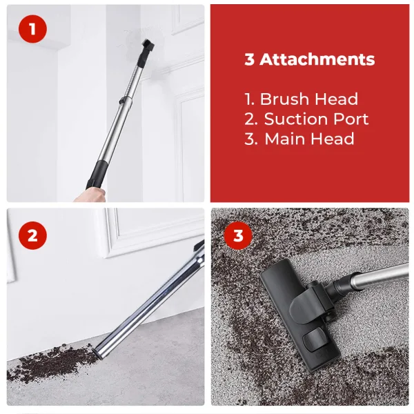 - Versatile Attachments: Comes with multiple attachments, including a crevice tool and brush nozzle, to tackle a variety of cleaning tasks—from floor to ceiling.